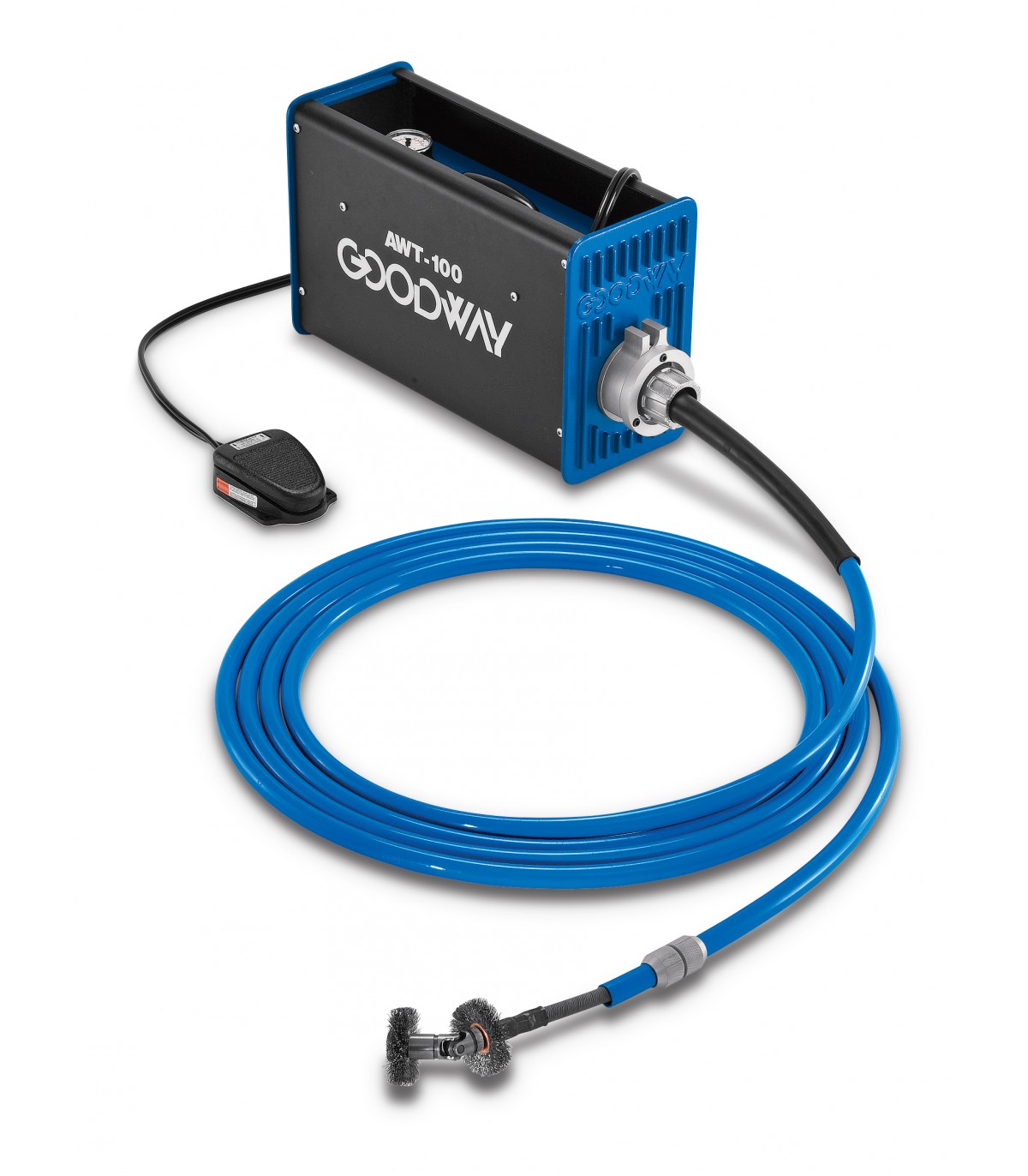 AWT-100 folosește o perie sau o sculă montată la capătul unui cablu flexibil. Pentru aplicații umede, unitatea alimentează cu apă prin carcasă către scula de curățare, spălând depunerile pe măsură ce se slăbesc. Pentru aplicații uscate, atașamentul GTC-DPA Dry Pickup și un vid simultan sunt folosite pentru a îndepărta depunerile slăbite.
